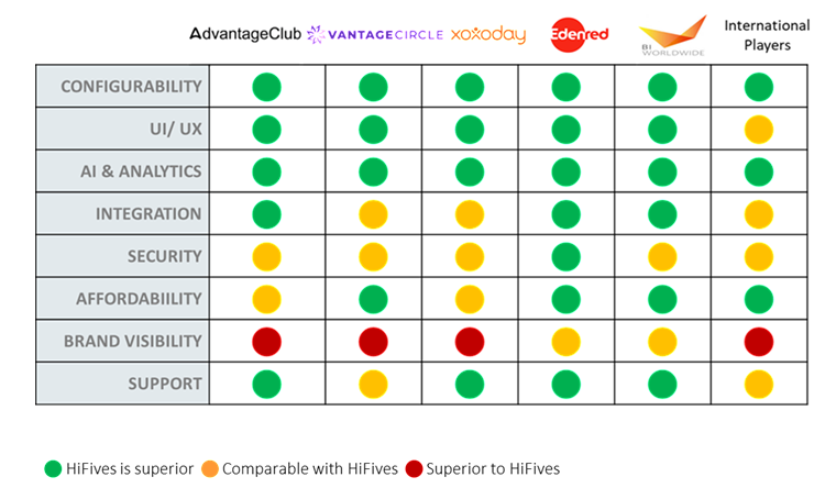 HiFives focuses on meaningful recognition, advanced analytics, AI-driven insights, deep customization, and strong compliance, not just catalog rewards.